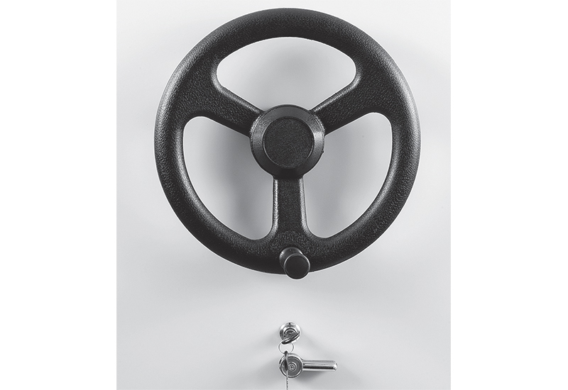 - каждая секция стеллажа оснащена стопором с замком для одновременной блокировки доступа к архиву и антиопрокидывающим устройством;