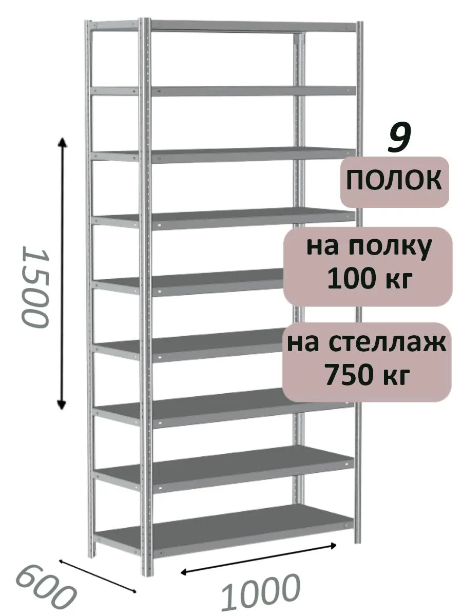 Чтобы уточнить цену и заказать доставку Стеллаж металлический полочный МС 1500х1000х600, 9 полок, 100 кг на полку, светло-серый в , звоните по телефону или закажите обратный звонок.