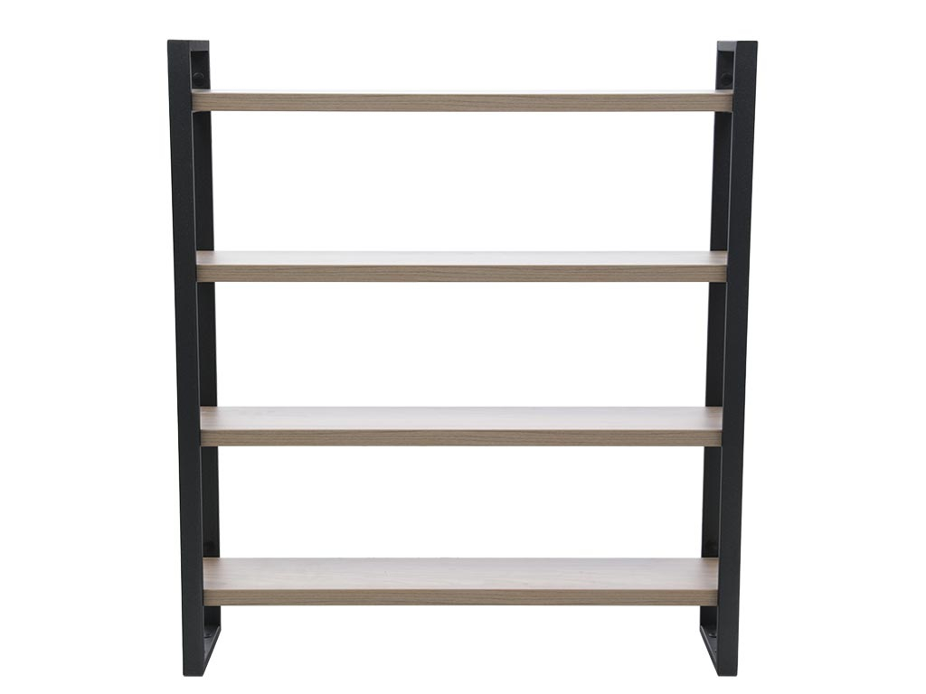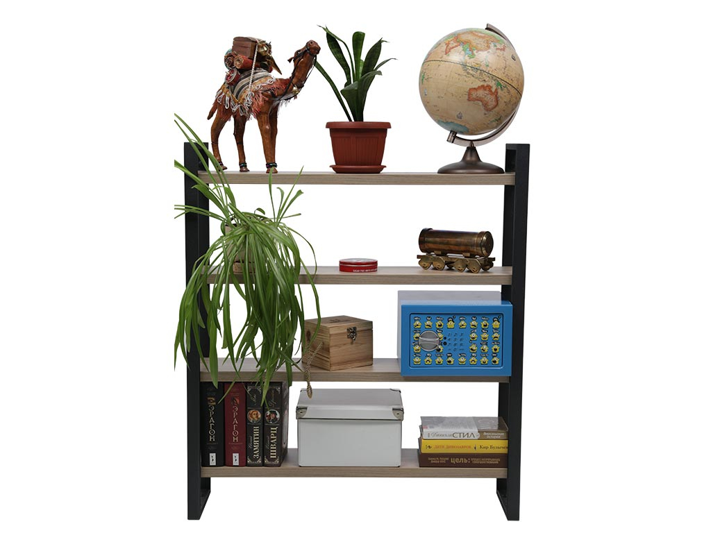 Полки стеллажа выполнены из ЛДСП, цвет - Вяз натуральный, толщиной 25 мм, с лазерной ABS кромкой толщиной 2 мм с полимерным функциональным слоем (Германия), которая обеспечивает эффект нулевого шва и улучшает влагостойкость и термостойкость элементов фасада