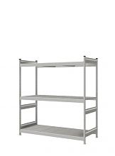 Сложный профиль стойки, горизонтальные стяжки и тройные зацепы обеспечивают жесткость конструкции.