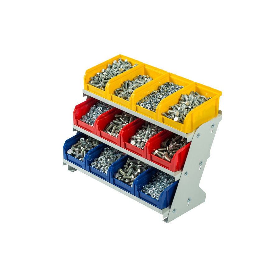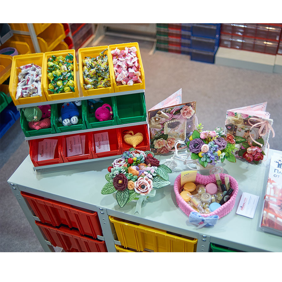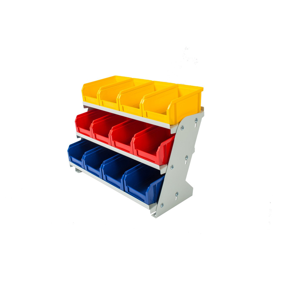 Настольный органайзер с ящиками V-1, 12 ящиков, для хранения мелких изделий. Настольные органайзеры с ящиками V-1 являются отличным дополнением к рабочему месту, где необходим быстрый доступ к мелкоштучным изделиям. Они могут устанавливаться на вашем рабочем столе, тумбе, верстаке, стеллаже, торговой витрине, применяться в автосервисе и т.п. Металлическая конструкция органайзера способна выдержать ящики, полностью нагруженные металлом. Предусмотрена возможность наклона полок для большего удобства работы. В комплект входит: пластиковый ящик V-1 12шт., настольный органайзер без ящиков V-1. Пять основных цветов ящиков: желтый, зеленый, красный, серый, синий помогут оживить ваше рабочее место, вписаться в корпоративные цвета вашей компании или просто грамотно рассортировать, хранящиеся в ящиках, изделия. При необходимости, ящики легко устанавливаются и снимаются с органайзера. Технические характеристики: тип ящиков V-1 высота 360мм., ширина 215мм., длина 425мм. Общий вес 4,3кг. Общий объем 0.025 куб.м. Габариты упаковки органайзера 430х200х100мм. Габариты упаковки с ящиками 300х170х210мм. Размер ящика V-1 172х102x75мм., объем 1л. Температура эксплуатации от -20 до +70С.