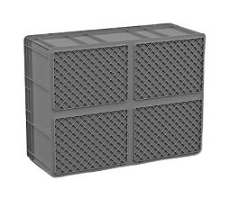 Линейка евроконтейнеров EC совместима с универсальными контейнерами, позволяет штабелировать их друг на друга и составлять компактный сет с размерами 1200х800 мм под использование на европоддоне.