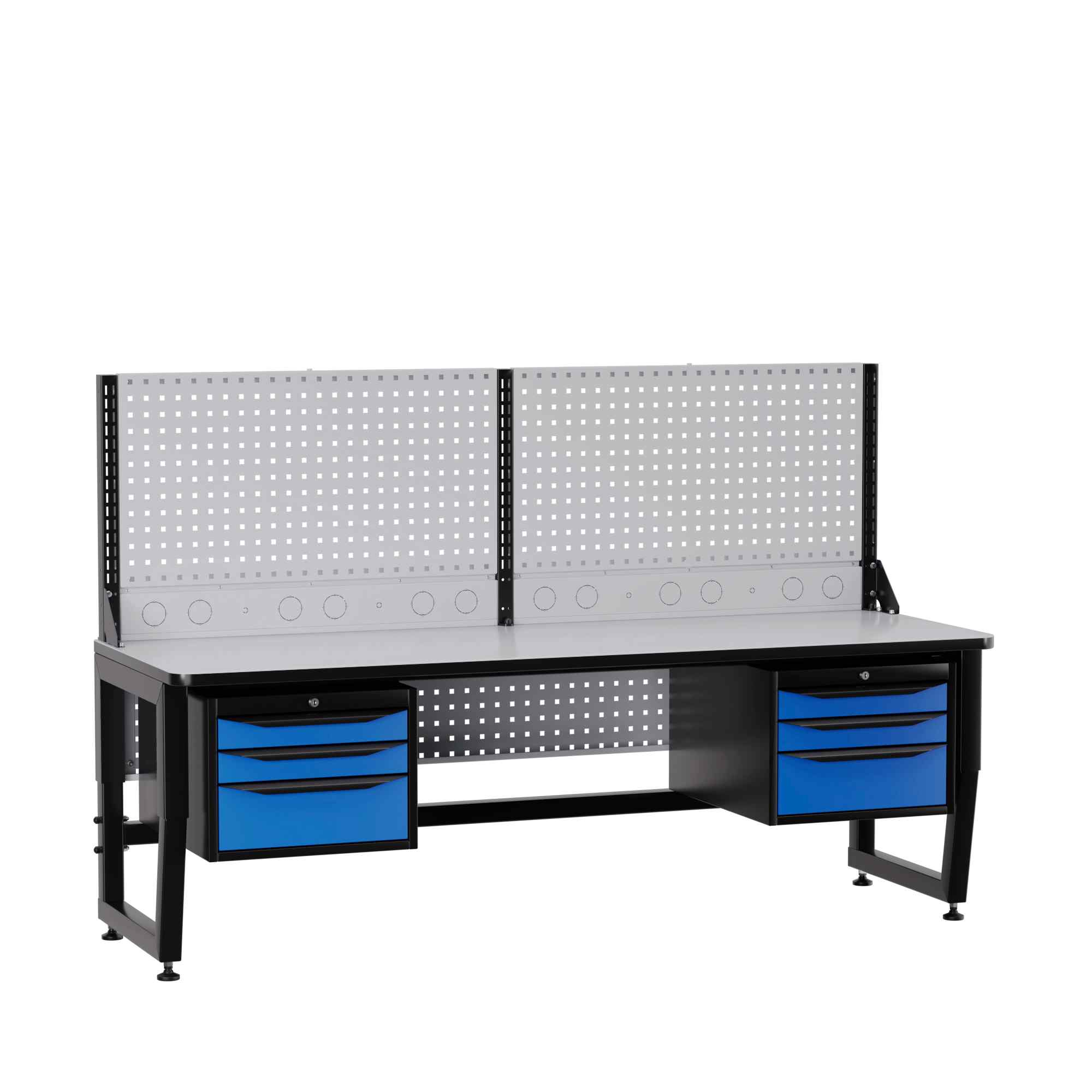 Несущая конструкция стола – это промышленный ESD каркас. Сочетание опорных, несущих и усиливающих элементов из металла, обеспечивают высокую надежность конструкции при интенсивной промышленной эксплуатации с распределенными нагрузками на рабочее место до 300 кг. Регулируемые опоры с возможностью плавной регулировки по высоте позволяют установить удобную высоту рабочей поверхности от 700мм до 850мм. Специальное ESD полимерное покрытие элементов каркаса с сопротивлением 1 МОм обеспечивают антистатические свойства изделия