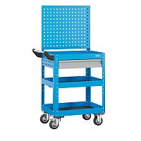 Боковые стенки представляют собой двойные перфорированные экраны. С внешней стороны тележки на них можно установить аксессуары к экранам — лотки, держатели инструмента и т.д. Между экранами установлена ВС полка. Максимальная нагрузка на полку — 200 кг.