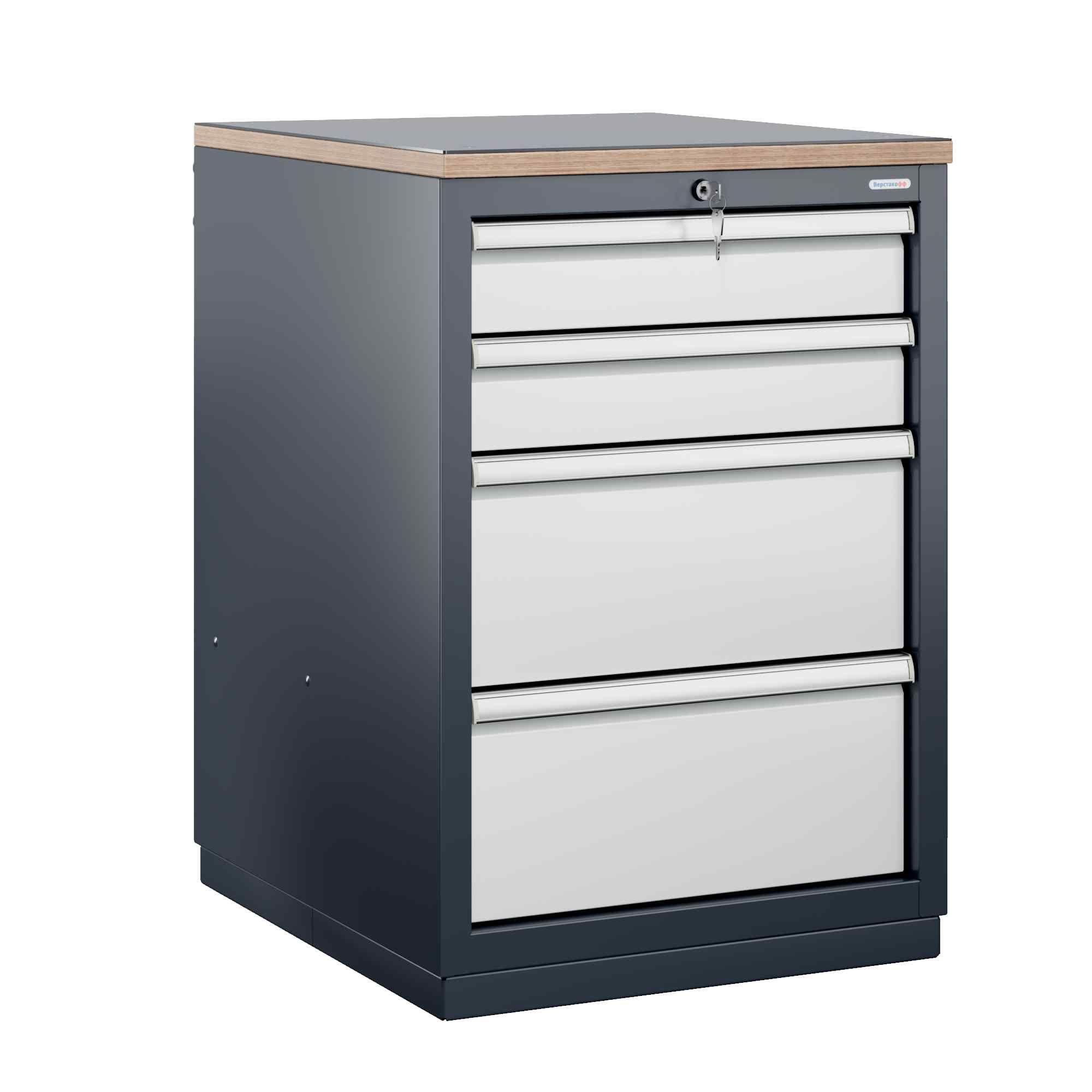 На каждой ручке ящика и двери закреплен специальный алюминиевый профиль с отделением для установки маркировки. На тумбы с выдвижными ящиками установлена система антиопрокидывания, которая ограничивает выдвижение остальных ящиков тумбы, если один из ящиков выдвинут. Тумбы снабжены центральной системой запирания.