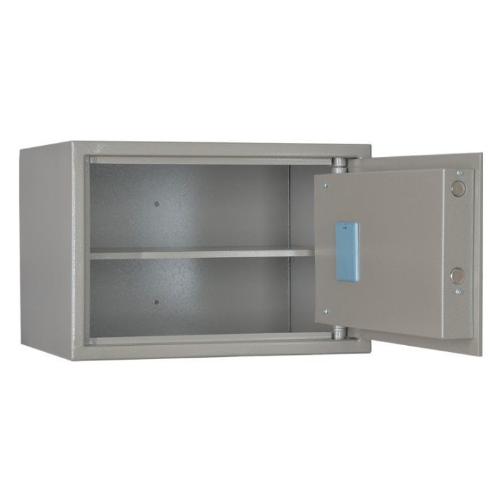 Шкаф односекционный, оснащен съемной полкой. В двери установлен замок электронный сейфовый. Шкаф соответствует всем требованиям МВД России.