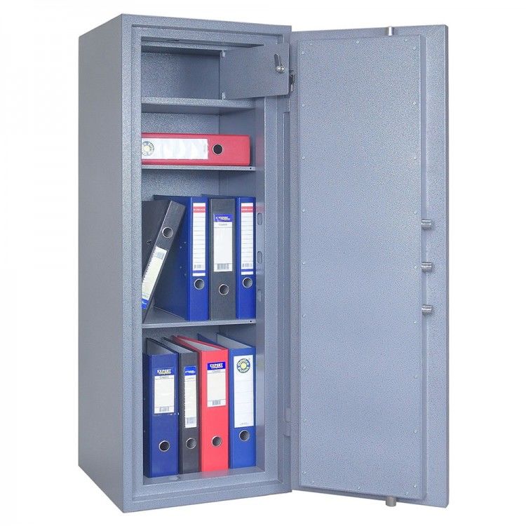 Сейф односекционный СМ2-120 предназначен для хранения бумажных документов и ценностей на сумму до 3 млн. руб. для физических лиц и до 800 тыс. руб. для юридических лиц. Сейф сертифицирован на устойчивость к взлому по ГОСТ Р 50862-2005 и соответствует 2 (второму) классу устойчивости. Сейф односекционный, оснащен двумя съемными полками и Трейзером . В двери установлен ключевой замок MAUER класс А. Для облегчения процесса открытия шкафа дверь оборудована поворотной ручкой.