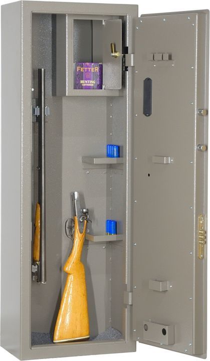 Шкаф односекционный, на 2 ствола оснащен съемными полками и отделением под патроны. Максимальная высота устанавливаемого оружия — 1130 мм. Ложементы — металлические держатели с резиновыми роликами. В дверь установлены кодовый электронный замок «Duotai» и ключевой замок ЗАО «Про-Сам» г. Рязань или аналогичный замок другого производителя.