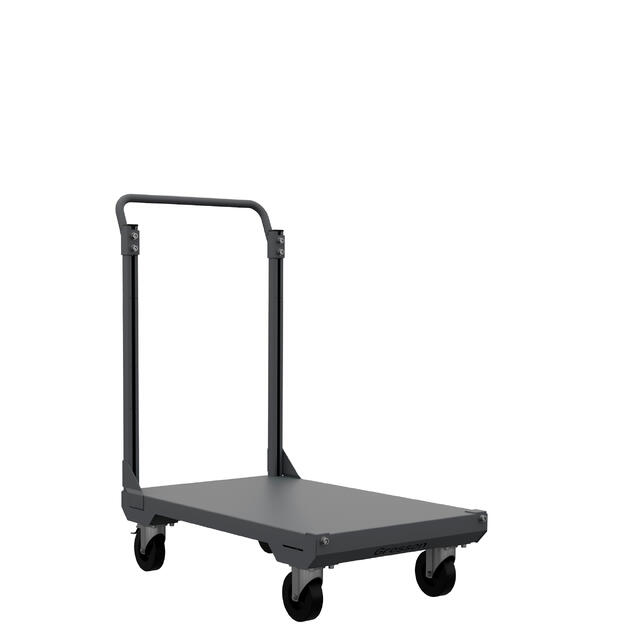 Тележка имеет прочную стальную раму, четыре поворотных колеса, два из которых снабжены тормозами.