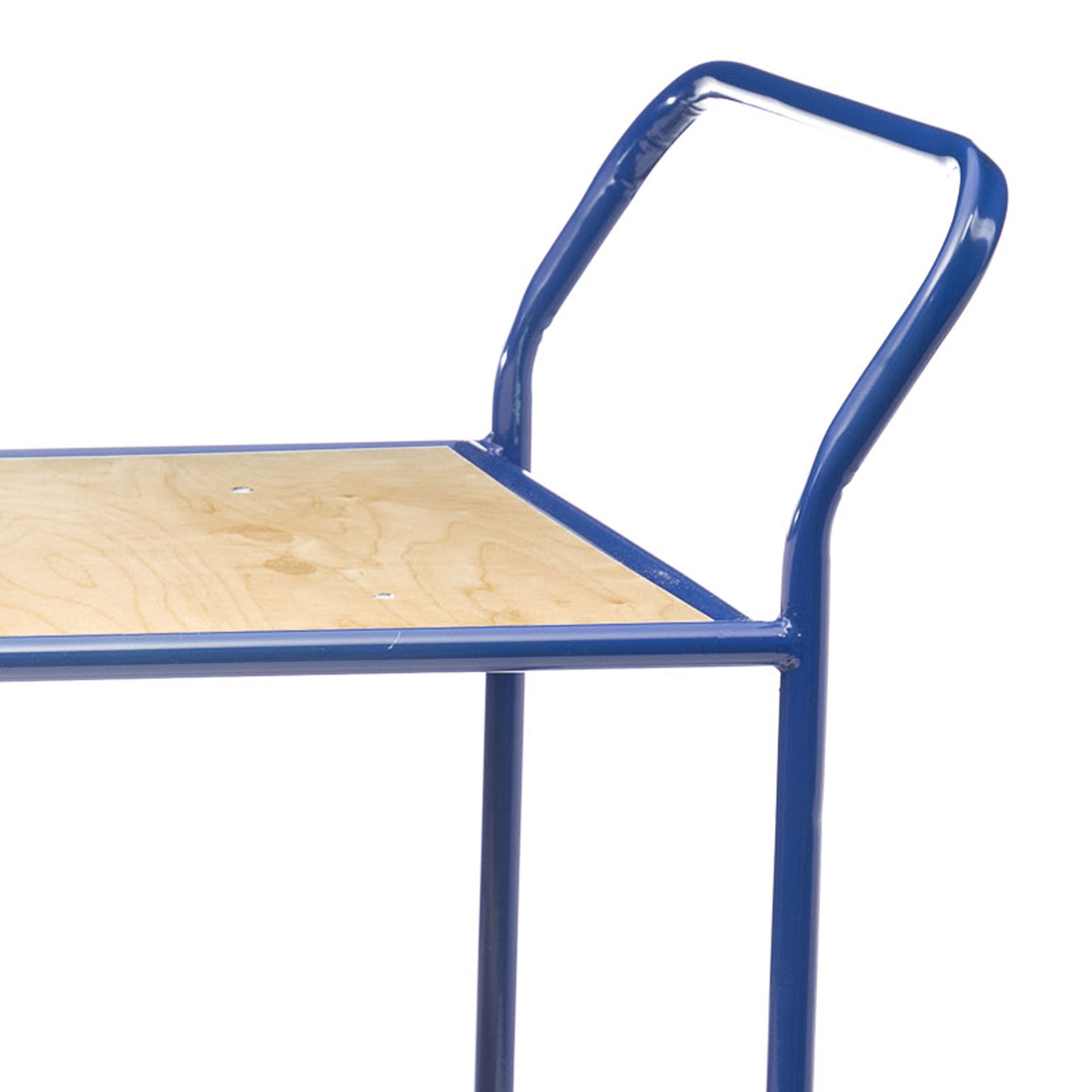 Платформенная двухъярусная 4-х колесная тележка КП-2 (2-х ярусная) (700х1200) используется для перевозки малогабаритных грузов Платформы имеют металлический каркас накрытый фанерой толщиной 10мм., размер платформы 700х1200мм., расстояние между ярусами 480мм., количество ярусов 2 шт, габаритная высота 1050мм. Покрытие металлических деталей тележки полимерное, цвет синий. Тележка широко используется на складах, в торговых павильонах, а также в гостиничном и ресторанном бизнесе. Две платформы позволяют удобно расположить перевозимые предметы.