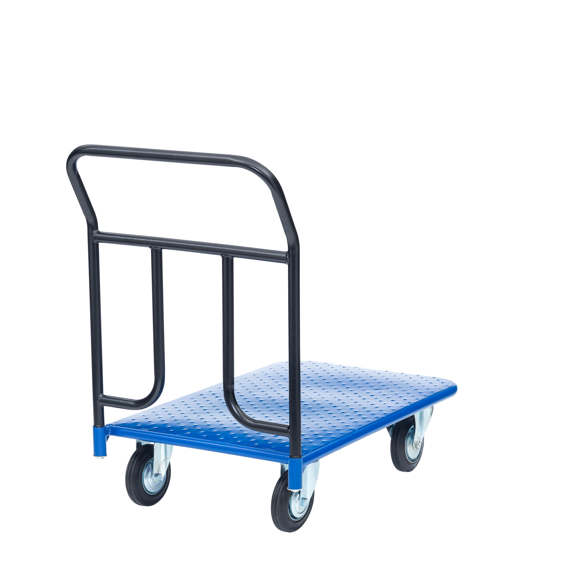 Платформенная 4-х колесная тележка КП-350 (600х1200) используется для перемещения различных грузов в складских помещениях. Ручка крепится к платформе болтами, для компактного хранения можно снять, высота ручки 750мм. Платформа имеет уникальную рельефную, полимерную, противоскользящую поверхность. Цвет синий, шагрень. Для легкого перемещения тележка КП-350 комплектуется 2 поворотными и 2 неповоротными колесами, изготовленными из высококачественной литой резины.