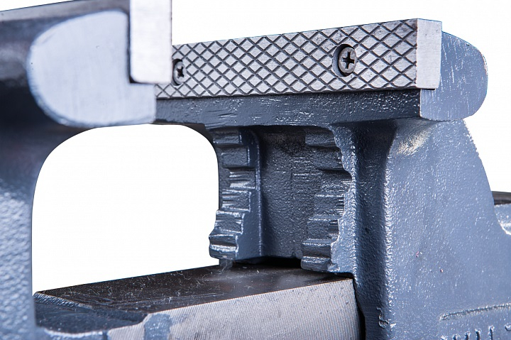 В серию «Мастерская» входят тиски, предназначенные в основном для любительского использования. Даже крупные модели этой линейки весьма доступны, что позволяет меньше оглядываться на бюджет при оборудовании домашней мастерской. При этом модели данной серии в полной мере сохраняют функционал, характерный для профессиональных аналогов: укомплектованы поворотным основанием с двумя фиксаторами, имеют наковальню, основной захват со съемными закаленными стальными губками и трубный с чугунными губками, отлитыми в корпусе.