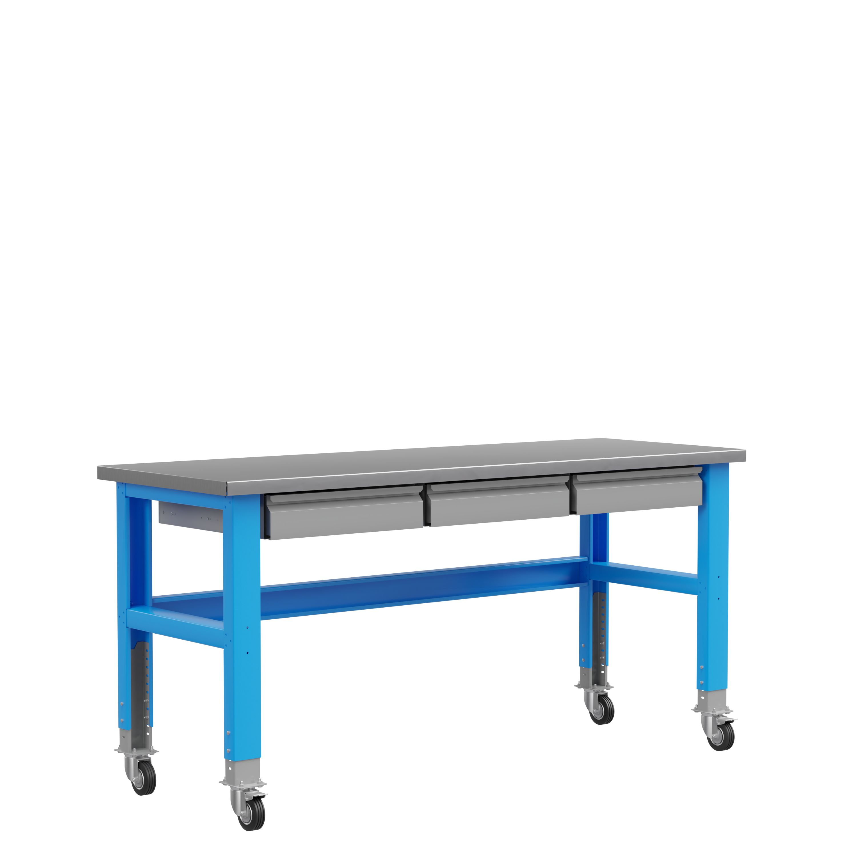 Конструкция опор позволяет производить регулировку по высоте от 800 до 1000 мм, что позволяет использовать подкатные инструментальные тележки «Верстакофф» серии 795.