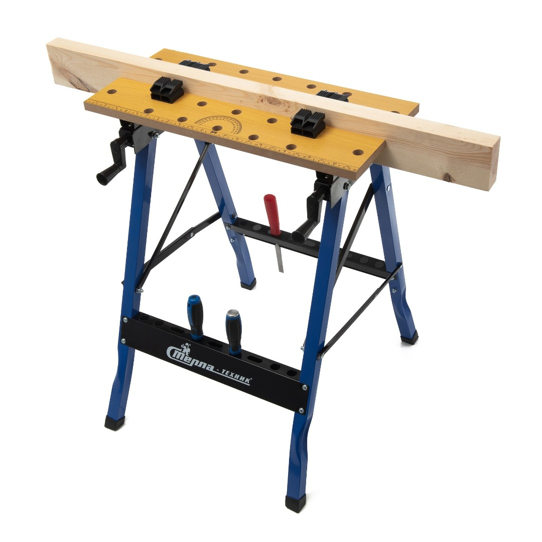 Верстак складной Стелла-техник ST-013 служит для удобного размещения и обработки деталей из дерева, металла, пластика при помощи слесарных инструментов. Это универсальный инструмент, который позволит сделать любой проект с максимальной точностью и качеством. Складные верстаки можно легко использовать и хранить в гараже, дома или мастерской.