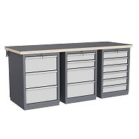 - широкий выбор различных тумб позволяет получить более 50 различных вариантов верстаков и рабочих столов под любые задачи;